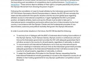 1. 終止與印度尼西亞奧委會關(guān)于未來舉辦奧運會、青奧會、奧運賽事或會議的任何對話,直到印度尼西亞政府向國際奧委會提供充分保證,允許所有參與者無論國籍如何,都能進入該國。