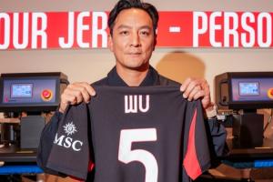 體育資訊10月24日訊 AC米蘭官博更新動(dòng)態(tài),曬出影星吳彥祖與米蘭球衣的合照,球衣印號是5號的“WU”。