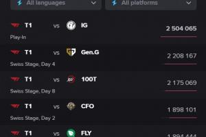 5-T1對(duì)陣FLY:189萬(wàn)。