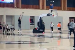 球進燈亮!米切爾腳踩logo轟進半場壓哨打板三分球