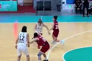 詹姆斯背身反扣還沒扣進(jìn)之前 場(chǎng)邊的珍妮·巴斯已經(jīng)張大了嘴巴!