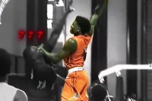炸!場(chǎng)邊看迪亞洛罰球線內(nèi)一步起跳隔扣卡爾頓!身體姿態(tài)極其舒展