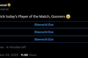 阿森納官方全場(chǎng)最佳投票,選項(xiàng):埃澤、埃澤、埃澤