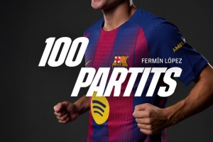 26球15助!費(fèi)爾明達(dá)成巴薩生涯百場(chǎng)里程碑,俱樂(lè)部曬海報(bào)祝賀