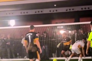 齊米卡斯和在做報道的皮耶羅互相傳球,卡佩羅幽默點評:傳錯人了