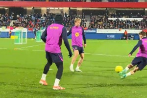 福登右路傳中,哈蘭德近距離射門被守門員撲出