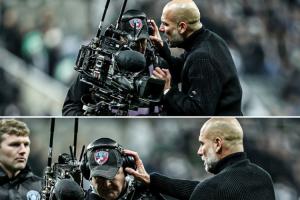 發(fā)生了什么?曼城輸球后瓜帥與攝影師交流,扒開耳機(jī)上前耳語