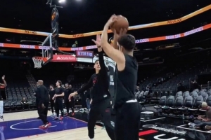 今天首發(fā)好好表現(xiàn)!謝潑德賽前熱身 底角三分四連中