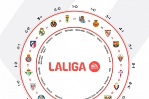 西甲曬本賽季各隊勝負閉環(huán)圖片:誰都可能戰(zhàn)勝誰!