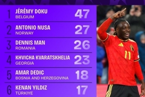 世歐預(yù)成功過人榜:多庫47次居首,克瓦拉茨赫利亞、伊爾迪茲在列