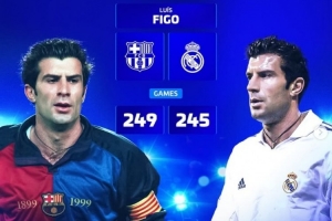 菲戈:巴薩249場、皇馬245場