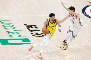 步行者主將哈利伯頓在比賽中跟腱撕裂,隨后退出比賽。