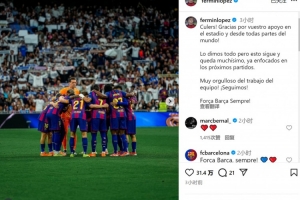 “我們傾盡全力,但征程仍在繼續(xù),未來(lái)還有很多比賽,此刻我們已經(jīng)專注于接下來(lái)的比賽。為球隊(duì)的努力感到無(wú)比自豪,繼續(xù)前進(jìn)!巴薩永遠(yuǎn)前進(jìn)!”