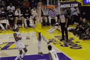 強(qiáng)行加戲!華盛頓扣籃被筐帽 自己拿板上籃得分