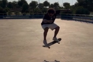 從視頻可以看到,馬塞洛玩滑板時(shí)秀了個(gè)躍起的動(dòng)作。