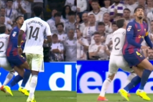 國(guó)家德比在最后時(shí)刻留下了全場(chǎng)最受討論的一次動(dòng)作。巴薩高空球開到禁區(qū),卡瓦哈爾與阿勞霍在禁區(qū)內(nèi)發(fā)生了對(duì)抗。根據(jù)世體描述,卡瓦哈爾不顧皮球,沖撞了阿勞霍,使其失去平衡并摔倒在禁區(qū)內(nèi)。阿勞霍要求判罰點(diǎn)球,但主裁并未示意,隨后VAR也沒有復(fù)核這次進(jìn)攻。