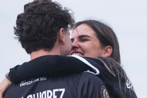 阿爾瓦雷斯社媒曬出視頻,他與女友召集親友,通過射進點球的方式宣布兩人將迎來一個男孩。