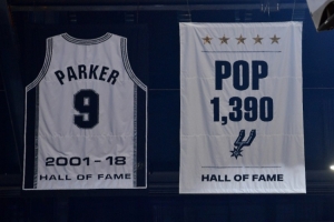 這面旗幟的每一處細(xì)節(jié),都是對(duì)傳奇的精準(zhǔn)注解。白色底紋上,五顆金色星星對(duì)應(yīng)著2003至2014年間的五座總冠軍獎(jiǎng)杯,底部“HALL OF FAME(名人堂)”標(biāo)識(shí)銘記著他2023年的榮耀加冕,而核心的“1390”字樣,則是波波維奇執(zhí)教的豐碑。數(shù)據(jù)不會(huì)說謊:2214場(chǎng)執(zhí)教、1390場(chǎng)勝利、62.8%勝率、22個(gè)賽季帶隊(duì)闖進(jìn)季后賽,季后賽總勝場(chǎng)達(dá)到170場(chǎng),5次總冠軍,3次獲得年度最佳教練。但比起數(shù)字,更動(dòng)人的是致敬方式——沒有盛大儀式,恰如波波維奇本人,永遠(yuǎn)將聚光燈讓給團(tuán)隊(duì)。
