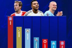 本賽季即將進入11月,而凱恩、姆巴佩、哈蘭德的進球數已經超過15球。