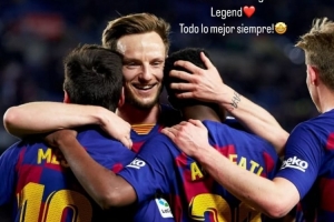 法蒂社媒曬出擁抱拉基蒂奇的照片,配文:“伊萬,祝賀度過杰出的職業(yè)生涯,能與你共用更衣室是我的榮幸!傳奇,祝你一切順利!”