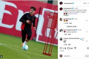亞沙里社媒曬出訓(xùn)練照片,并寫道:“很高興在度過一段艱難時期之后重返球場,加油兄弟們!”