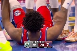 GIF-懷特對恩比德犯規(guī),隨后被換下