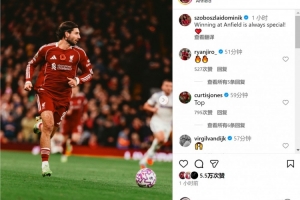索博斯洛伊當(dāng)選利物浦隊(duì)內(nèi)最佳球員,他在社交媒體上慶祝勝利:“在安菲爾德取勝總是很特別?!?/p>