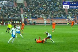比賽第43分鐘,宋浩宇防守時被倒地的羅競踢到襠部,隨后隊(duì)醫(yī)進(jìn)場治療。