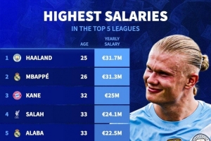 體育資訊11月3日訊 德國轉(zhuǎn)會市場統(tǒng)計了五大聯(lián)賽球員的年薪,并列出榜單,哈蘭德3170萬歐居首。