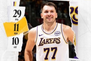 賽后湖人發(fā)布東契奇三雙數(shù)據(jù)海報,并寫道:生涯第83次三雙。