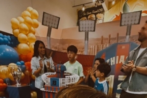 從網(wǎng)上流傳的照片來看,梅西一家舉辦了巴薩主題派對,為蒂亞戈慶祝13歲生日。