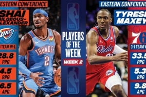 體育資訊11月4日訊 今日NBA官方公布了2025-26賽季第二周東西部最佳球員,馬克西和亞歷山大分別當(dāng)選。