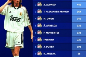 體育資訊11月5日訊 作為歐洲足壇兩大豪門(mén),利物浦和皇馬曾吸引諸多球星效力。德國(guó)轉(zhuǎn)會(huì)市場(chǎng)盤(pán)點(diǎn)了在兩隊(duì)均有效力的球員總出場(chǎng)次數(shù)排行,麥克馬納曼為兩隊(duì)共出場(chǎng)522次居首,皇馬主帥阿隆索則以446場(chǎng)位居次席。