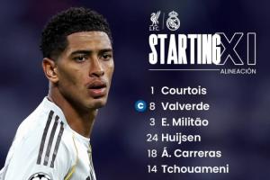 歐冠第4輪,皇馬客戰(zhàn)利物浦首發(fā)11人