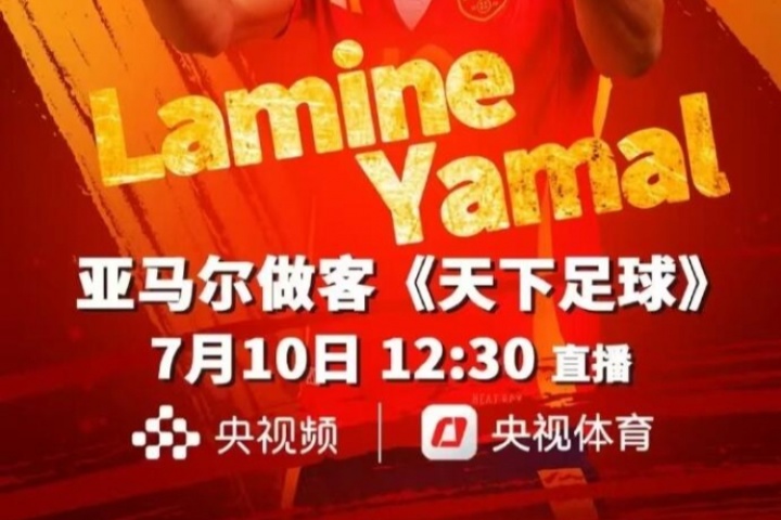 有網(wǎng)傳圖片顯示,亞馬爾將在7月10號12:30做客央視天下足球欄目。
