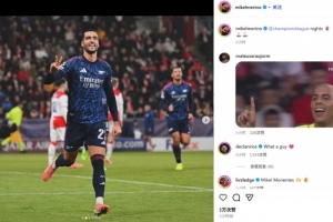 體育資訊11月5日訊 阿森納在本輪歐冠客場3-0完勝布拉格斯拉維亞,梅里諾客串中鋒梅開二度。