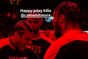 前隊(duì)友杰倫-格林在INS轉(zhuǎn)發(fā)了兩人的合照,并寫道:“祝你生日快樂,殺手惠特摩爾?!?/p>