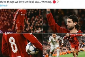 索博斯洛伊?xí)癯鲑悎?chǎng)照片,并配文寫道:“我們熱愛的三件事:安菲爾德、歐冠、勝利?!?/p>