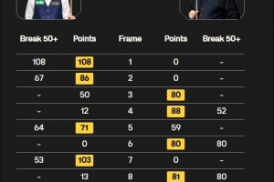 全場比賽,斯蒂芬-馬奎爾打出五桿50+(52、80、80、66、96),江俊打出一桿108分和四桿50+(67、64、53、58)
