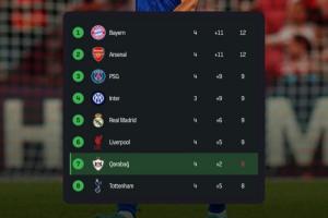 實(shí)時(shí)積分榜方面,卡拉巴赫憑借對(duì)切爾西的領(lǐng)先已經(jīng)來(lái)到歐冠第7位,此前他們?cè)跉W冠正賽中先后戰(zhàn)勝本菲卡和哥本哈根,頭2輪收獲2連勝。