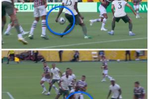 體育資訊07月09日訊 世俱杯半決賽,弗魯米嫩塞vs切爾西,比賽第35分鐘,查洛巴手球,裁判判罰點(diǎn)球,隨后VAR介入,裁判取消點(diǎn)球判罰。