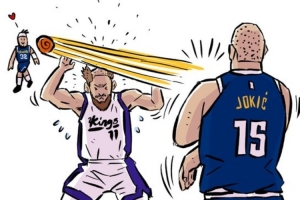 體育資訊11月6日訊 在之前掘金對陣國王的比賽中,約基奇貼著多曼塔斯·薩博尼斯頭皮傳球的一幕,被漫畫家Jay Kim創(chuàng)作出一幅搞笑漫畫。