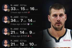 體育資訊11月6日訊 NBA常規(guī)賽,掘金122-112擊敗熱火。約基奇拿到33分15籃板16助攻3搶斷,正負(fù)值+18。