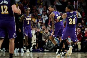 這7分鐘里,湖人上場拼殺過的角色球員包括海斯、八村塁、艾頓、斯瑪特、拉拉維亞,整個一個“失意者聯盟”——