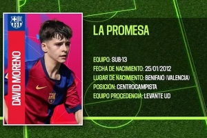 大衛(wèi)-莫雷諾是巴薩青訓(xùn)營中最具潛力的球員之一。上賽季,他成為了巴薩所有11人制球隊中最耀眼和最令人矚目的球員。這名左腳中場將在明年1月25日年滿14歲,2023-24賽季從萊萬特加盟后,他已經(jīng)在巴薩青訓(xùn)營度過了兩個輝煌的賽季。