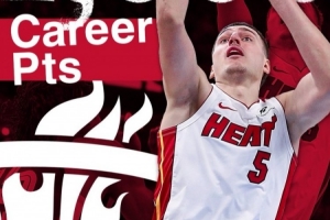 目前,約維奇已經(jīng)得到10分,個(gè)人生涯總得分突破1000大關(guān),這是他生涯第116場比賽。