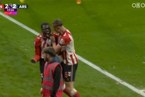 體育資訊11月09日訊 英超第11輪,阿森納客戰(zhàn)桑德蘭。補時第94分鐘,布羅比側(cè)勾破門,拉亞出擊未撲到,桑德蘭2-2阿森納!