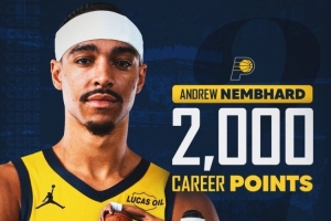至此,內(nèi)姆哈德常規(guī)賽生涯總得分突破2000大關(guān)。