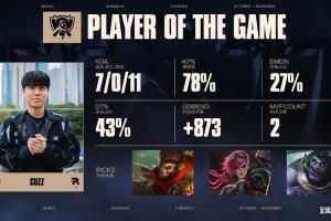 體育資訊11月09日訊 Cuzz拿下S15總決賽第三局MVP,總數(shù)據(jù)7-0-11,參團(tuán)78%,承傷占比43%!
