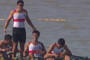 體育資訊11月10日訊 第十五屆全國運(yùn)動會男子四人雙槳決賽,來自江蘇隊(duì)的張自毫、臧哈、張漢文、蔡鵬鵬以4:12.24強(qiáng)勢奪魁,拿下賽艇項(xiàng)目首枚金牌!
